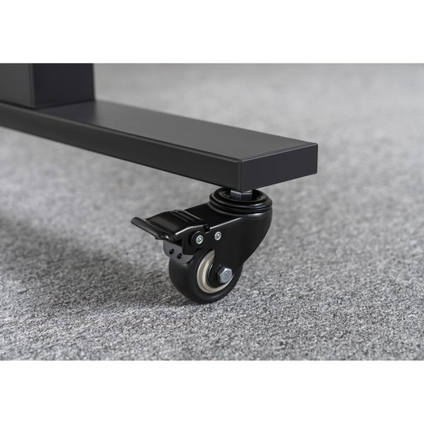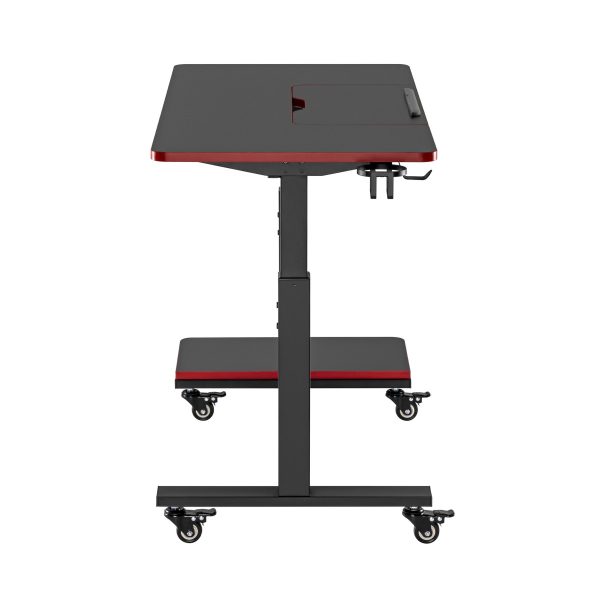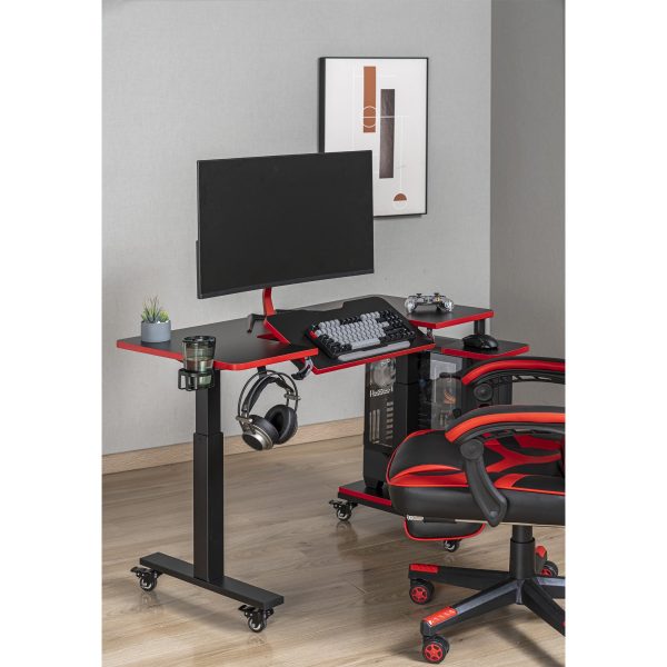 • Заключващите се колелца плюс стойката за компютърна кутия превръщат бюрото в лесно преносима станция, което позволява на геймърите да местят своите компютри бързо.