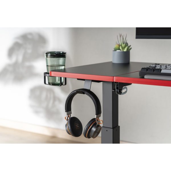 Удобната поставка за слушалки и държача за напитки осигурят на геймърите лесен достъп до често използваните предмети, като същевременно оставят работния плот свободен за игровата магия. Така геймърите могат да се концентрират изцяло върху играта си, без да се притесняват за организацията на аксесоарите си.