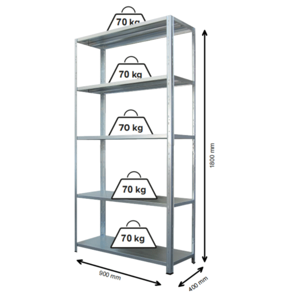 Стелаж 900/400/1800 h mm с 5 рафта до 70кг, безболтов, цинк
