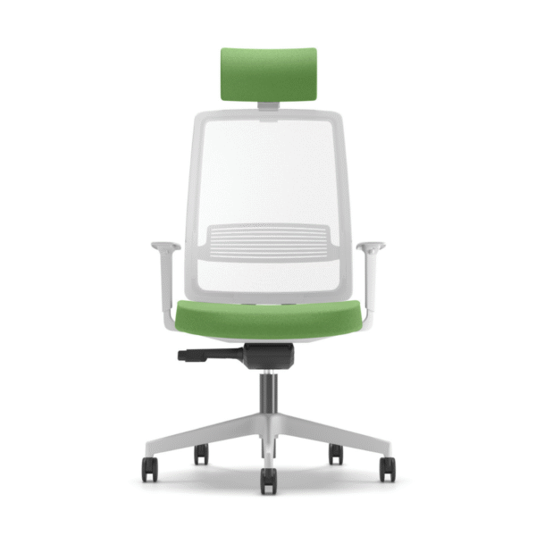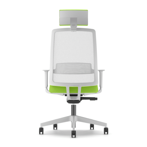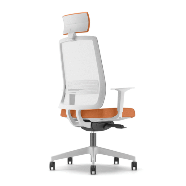 • Ергономична облегалка, тапицирана в мрежа – бял цвят.