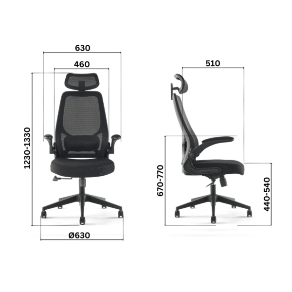 • Ергономична облегалка, изработена от мрежа в черен цвят.